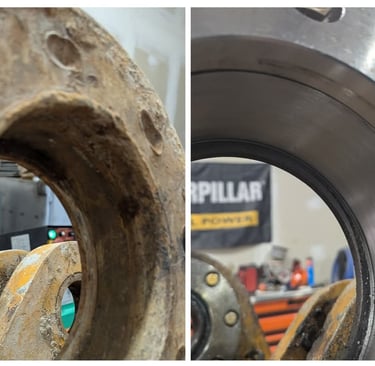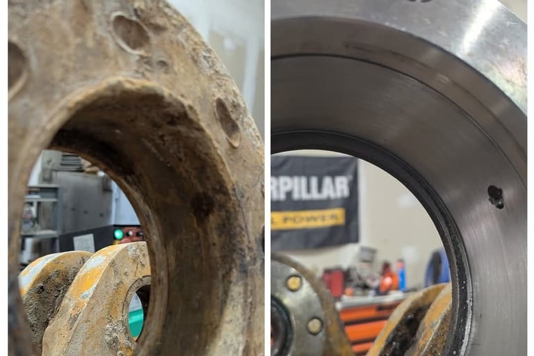 The process of precisely repairing machine bores (buckets, sticks, booms, etc ) with the use of robotics. Repairing the component versus replacing most often proves to be more cost effective.